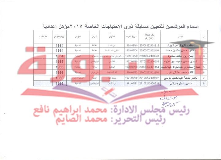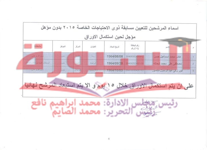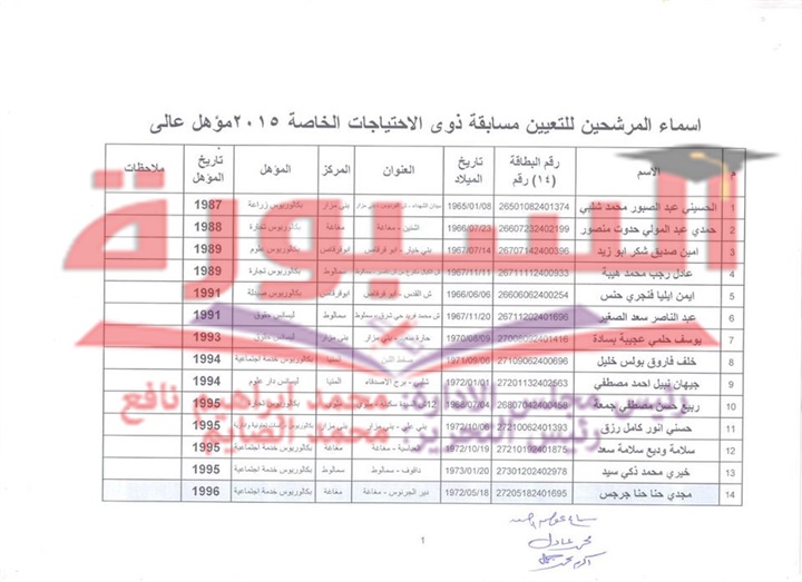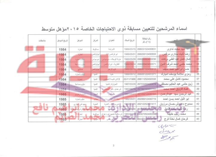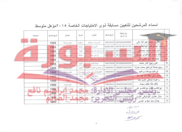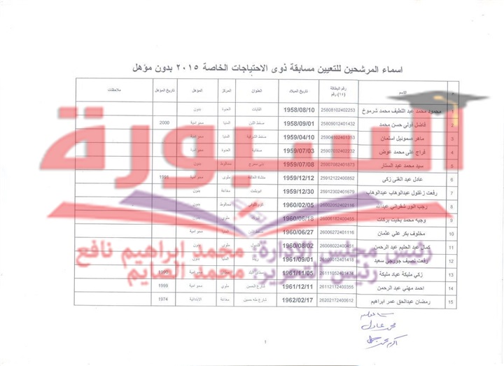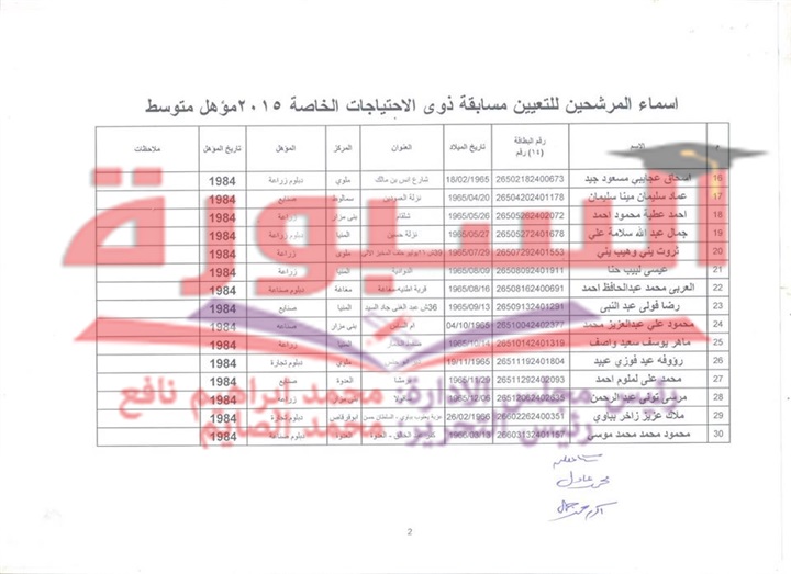 ننشر أسماء المرشحين للتعيين من ذوى الاحتياجات الخاصة بمحافظة المنيا