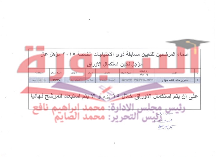 الف مبروك لمن انطبقت عليه شروط المسابقه وعلى الاسماء المطلوب منها استيفاء اوراقها سرعه متابعة مديرية التنظيم والاداره خلال المدة المحدده حتى لا يتم استبعادهم