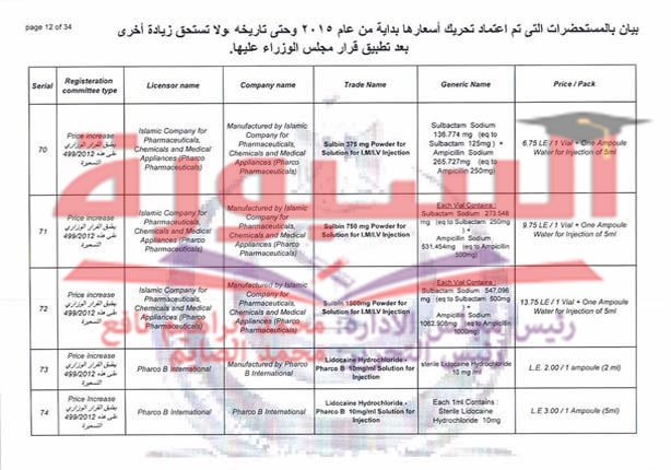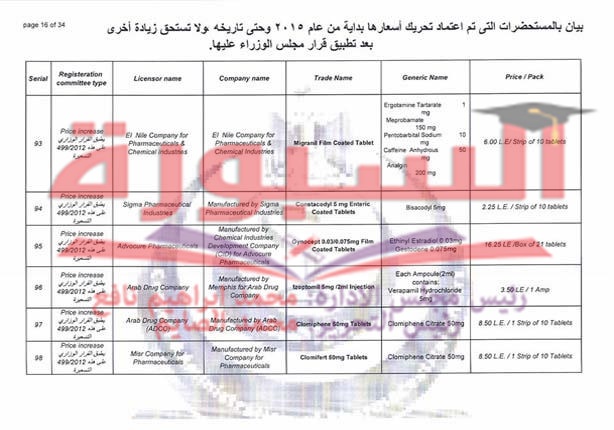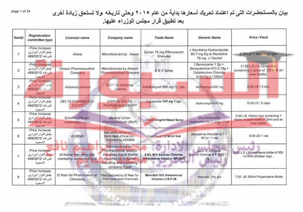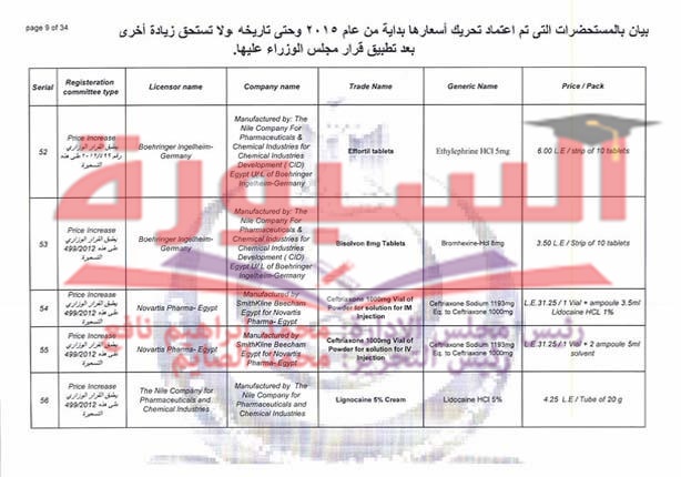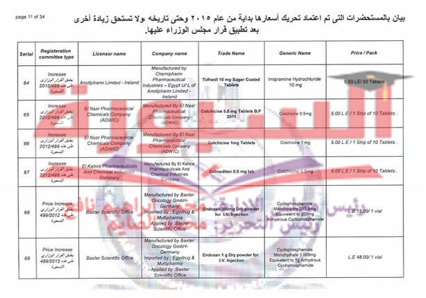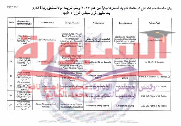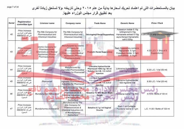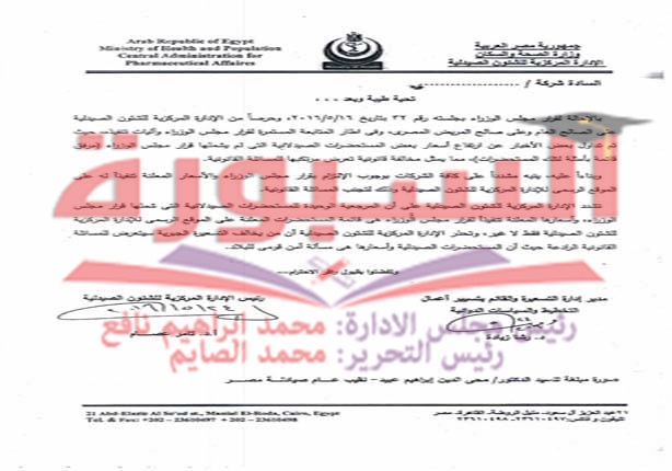 ودعت النقابة شركات الأدوية إلى الالتزام بقرار مجلس الوزراء والأسعار المعلنة على الموقع الرسمى للإدارة المركزية للشئون الصيدلية وذلك لتجنب المسائلة القانونية .