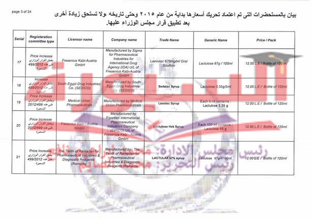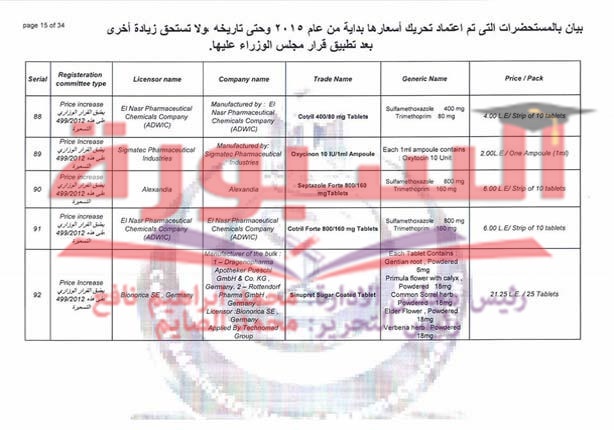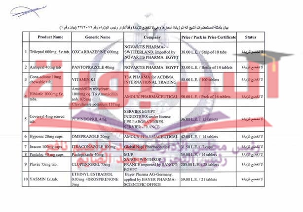 وأشارت النقابة إلى أن الأدوية التى تغير سعرها طبقا لقرار رئيس الوزراء، سيتم صدور تسعيرة نهائية لها قريبا، موثقة ومختومة من الإدارة المركزية ونقابة الصيادلة. وأضافت النقابة أنها تتواصل حاليًا مع الإدارة المركزية للشئون الصيدلية بوزارة الصحة، وعقدت عدة لقاءات مع مدير الإدارة الدكتور تامر عصام، للانتهاء من قائمة تسعيرة الأدوية التى زاد سعرها لنشرها على الموقع الرسمى، وإنهاء حالة التخبط التى يعانى منها سوق الدواء.