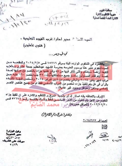 عاجل.. التنظيم والادارة: خصم الجزاء من الراتب الأساسى للمعلمين فقط وليس على الصافى
