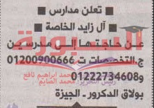 تعلن مدارس آل زايد في مصر تعلن عن وظائف جديدة للمعلمين في جميع المواد واليكم نص الإعلان:
