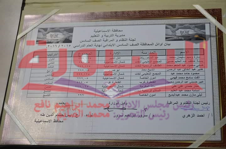 ننشر أسماء أوائل ابتدائية الاسماعيلية