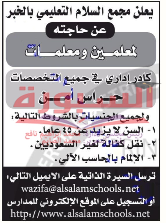 تعلن مدرسة خاصة في المملكة العربية السعودية عن وظائف شاغرة للمعلمين والمعلمات في جميع الموادللتعاقد الفوري واليكم نص الاعلان: