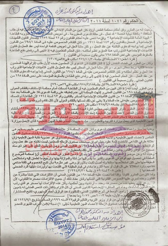 عاجل.. ننشر حكم قضائى بأحقية حصول المعلمين على 31 ألف جنيه بدلا من 15 ألف جنيه من صندوق الزمالة