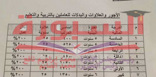 عاجل.. ننشر جدول الأجور والمرتبات والبدلات والحوافز للمعلمين التى أقرته نقابة المعلمين فى قانون التعليم الجديد