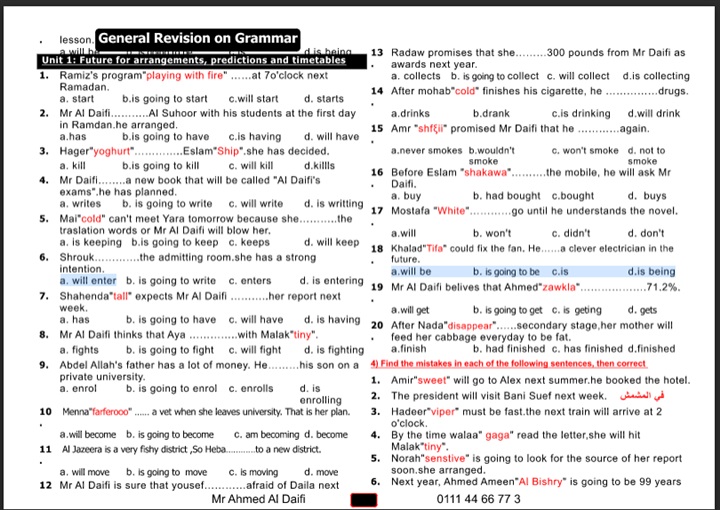 ننشر أهم التوقعات لقواعد اللغة الانجليزية للثانوية العامة وأجوبتها