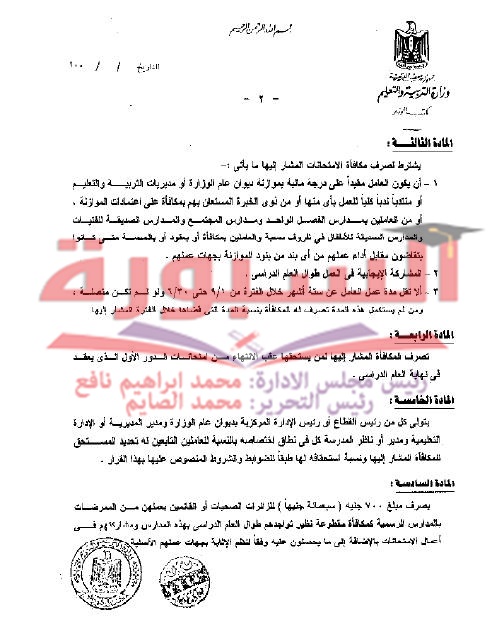 ننشر القرار الوزارى الخاص بتحديد شروط وقواعد وأحكام صرف مكافأة الامتحانات للمعلمين