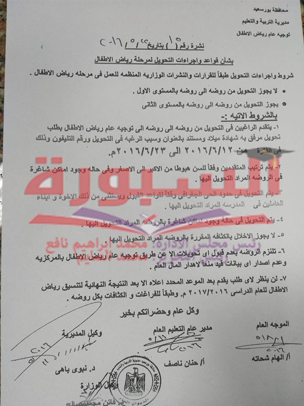 ينشر موقع السبورة الشروط والاجراءات الواجب اتباعها فى حالة التحويل من مرحلة رياض الاطفال حسب القرارات والنشرات الوزارة الصادرة من قبل وزارة التربية والتعليم.