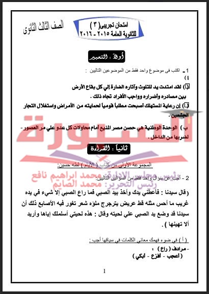 ننشر الامتحان التجريبى الثالث للعربى لطلاب الثانوية العامة.. مش هيخرج عنه الامتحان
