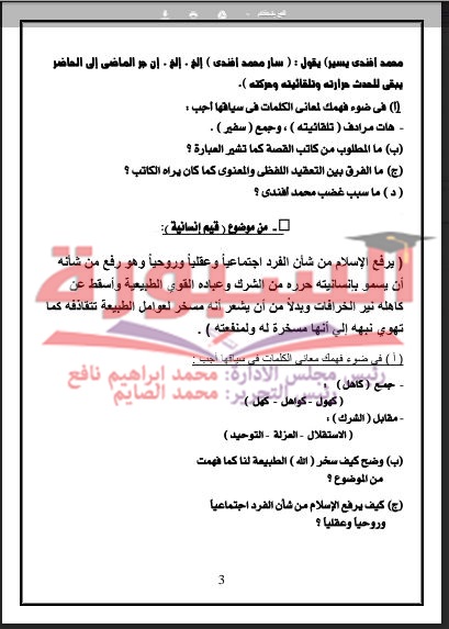 يواصل موقع السبورة التعليمى عرض الامتحان التجريبى الثالث لطلاب الثانوية العامة، والذى قام باعداده استاذ المادة السيد فياض.