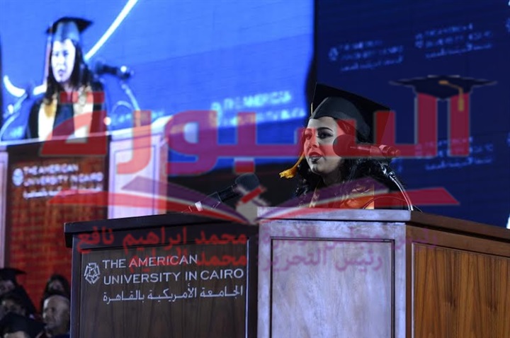 قامت الفنانة يسرا وسفيرة النوايا الحسنة بإلقاء الكلمة الرئيسية في حفل تخرج طلاب البكالوريوس كما حصلت على الدكتوراه الفخرية في الفنون من الجامعة الأمريكية بالقاهرة. قام بإلقاء الكلمة الرئيسية في حفل الدراسات العليا خريج الجامعة أحمد زهران، وهو رئيس مجلس إدارة ومؤسس كارم سولار .