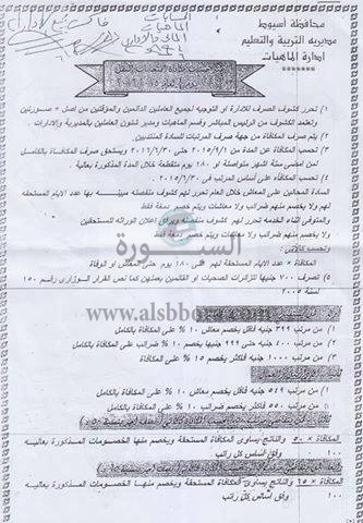 أرسلت وزارة التربية والتعليم فاكسا الى مديرية التربية والتعليم بمحافظة اسيوط بشأن التعليمات الخاصة بصياغة مكافآت الامتحانات لصفوف النقل للعام الدراسى الحالي 2015 / 2016
