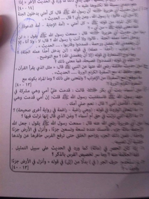 تسريب اسئلة امتحان مادة الحديث لطلاب الثانوية الأزهرية "علمى"