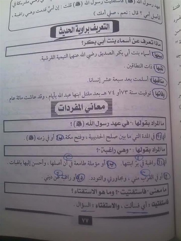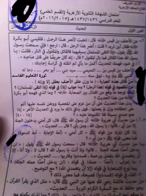 إجابات امتحان مادة الحديث لطلاب الثانوية الأزهرية فى تسريبات "ثورة التعليم الفاسد"