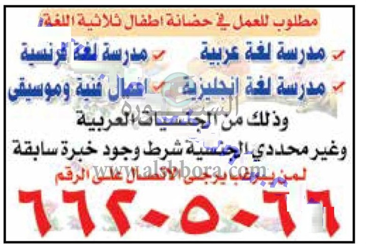تعلن مدرسة خاصة في دولة الكويت عن حاجتها للتعاقد مع معلمين وذلك وفقا للإعلان التالي: