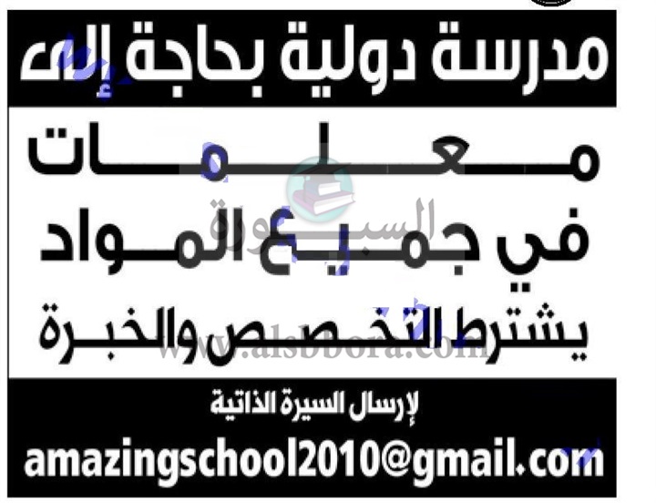 تعلن مدرسة خاصة في دولة قطر تعلن عن حاجتها للتعاقد مع معلمين وذلك في المواد التالية: