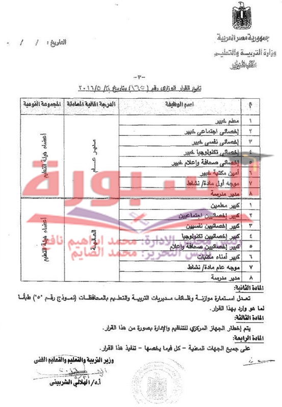 بالمستندات| الهلالى يعتمد جدول وظائف أعضاء هيئة المعلمين.. ويؤكد: المعلم المساعد على الدرجة الثالثة