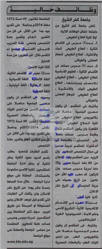 اعلنت جامعة كفر الشيخ عن وجود بعض الوظائف الشاغرة .. التفاصيل فى الاعلان