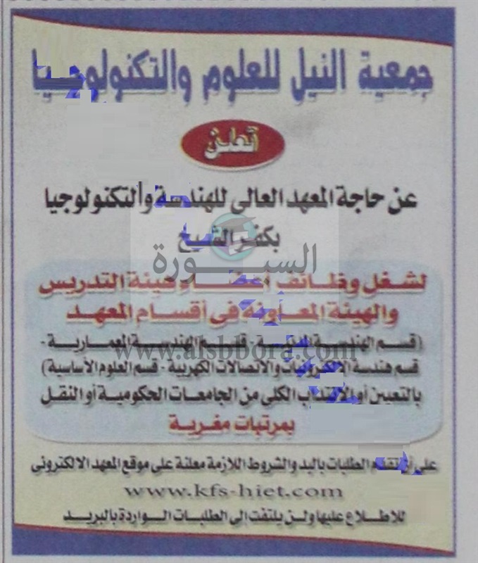 تعلن جامعة النيل عن وظائف شاغرة لأعضاء هيئة التدريس" من معيد الي أستاذ" وذلك وفقا لنص الإعلان التالي: