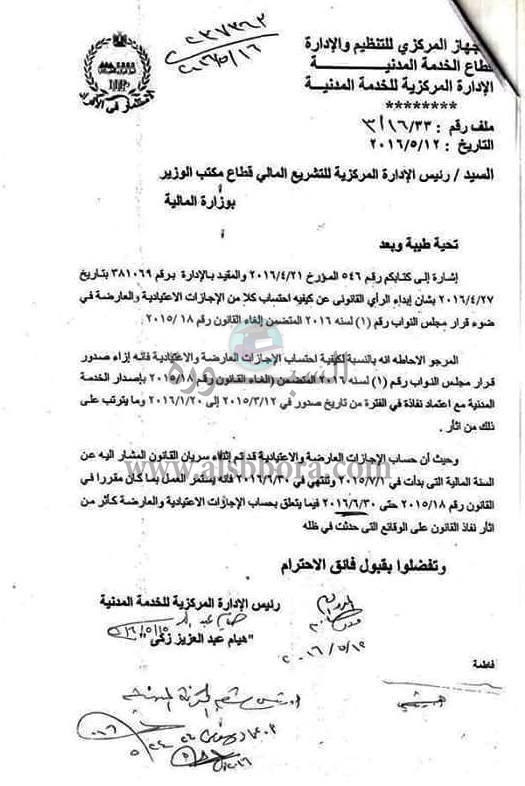 بالمستندات| كيفية حساب الاجازات الاعتيادية والعارضة فى ضوء قرار رقم (1)لسنة2016