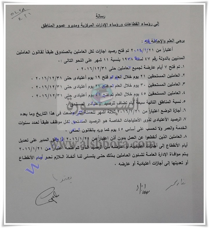 بالمستندات| ننشر نظام الاجازات الاعتيادية والعارضة بالتأمينات.. واجازة الوضع اعتبارا من 2016/1/21