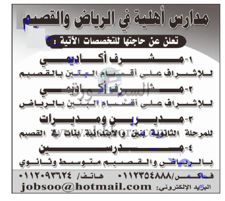 تعلن مدرسة خاصة السعودية تعلن عن وظائف شاغرة للمعلمين في جميع المواد بمرتبات متميزة وذلك وفقا لنص الإعلان التالي: