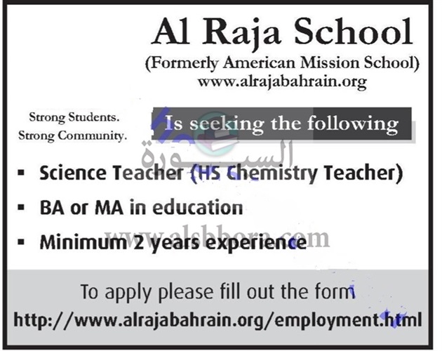 عن حاجتها الى معلمين، وعلى الراغبين فى التقدم ارسال السيرة الذاتية على