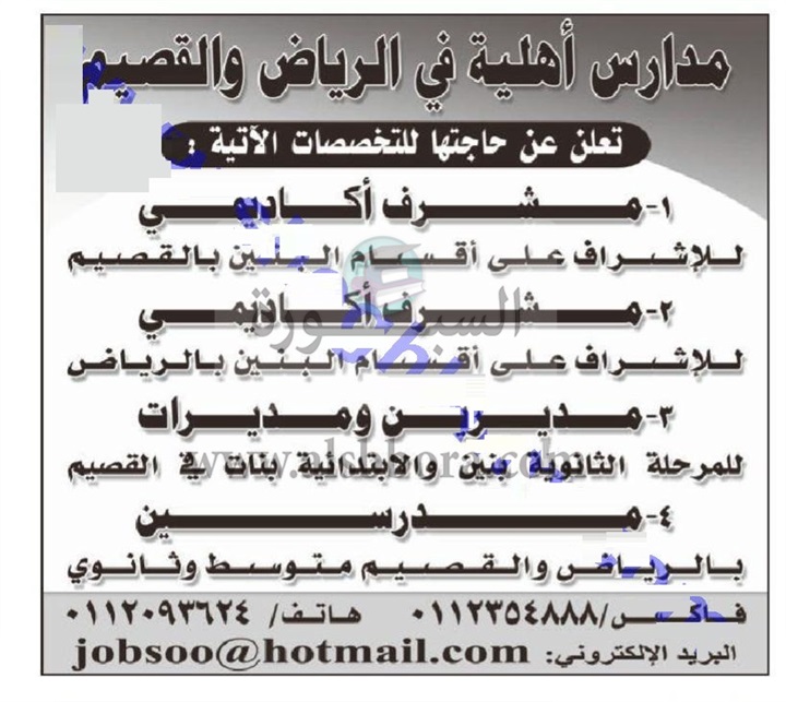 عدد من المدارس الكبري في المملكة العربية السعودية عن وظائف شاغرة للمعلمين في جميع التخصصات وذلك وفقا لنص الاعلان التالي:
