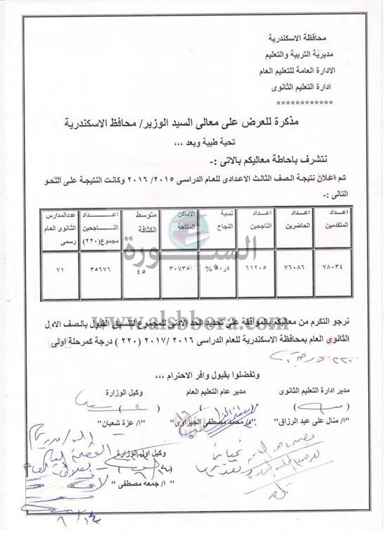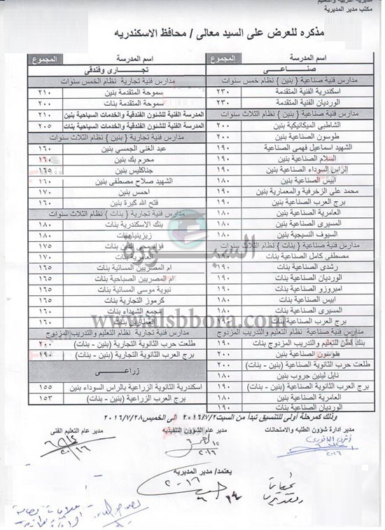 بالمستندات| ننشر نتيجة تنسيق التعليم الثانوى و الفنى بالإسكندرية