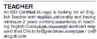 تعلن احدى مدارس الانترناشونال بدولة قطر عن حاجتها الى معلمين، وعلى الراغبين فى التقدم ارسال السيرة الذاتية على الايميل المنشور عبر الاعلان التالى:
