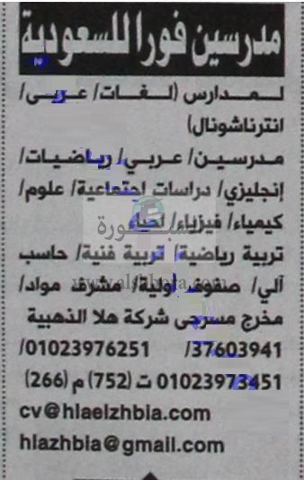 تعلن عدد من المدارس الكبري بالسعودية عن وظائف شاغرة للمعلمين للتعاقد الفوري وذلك وفقا لنص الاعلان التالي: