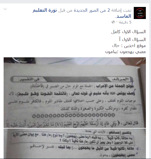تداول اجابات التفسير على صفحات الغش الالكترونى