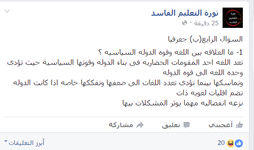 تواصل صفحة "ثورة التعليم الفاسد" من نشر اجابات الامتحانات حيث نشرت منذ قليل اجابات امتحان الجغرافيا وذلك بعد تسريب الامتحان بقليل