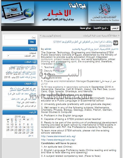 أعلنت الاكاديمية المهنية للمعلمين عن حاجة مدارس المتفوقين الى معلمين ومعلمات، وعلى الراغبين فى التقدم الدخول على موقع الاكاديمية ولمزيد من التفاصيل بشأن التخصصات المطلوبة اضغط هنااااااااا