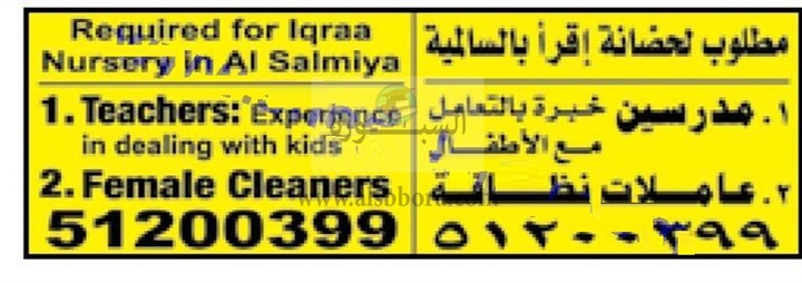 تعلن مدرسة خاصة في دولة الكويت عن وظائف شاغرة للمعلمين وذلك وفقا لنص الإعلان التالي: