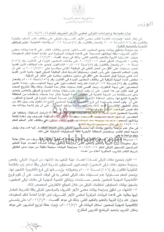 عاجل.. ننشر اجراءات وضوابط الترقى لمعلمى الازهر 2017/2016.. تعرف على التفاصيل
