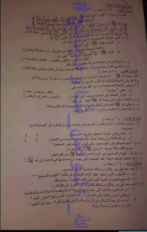 عاجل.. "القيصر بيغشش ثانوية عامة" ينشر أسئلة امتحان التربية الاسلامية لطلاب الثانوية العامة.. ويدعى أنه نموذج امتحان غدا