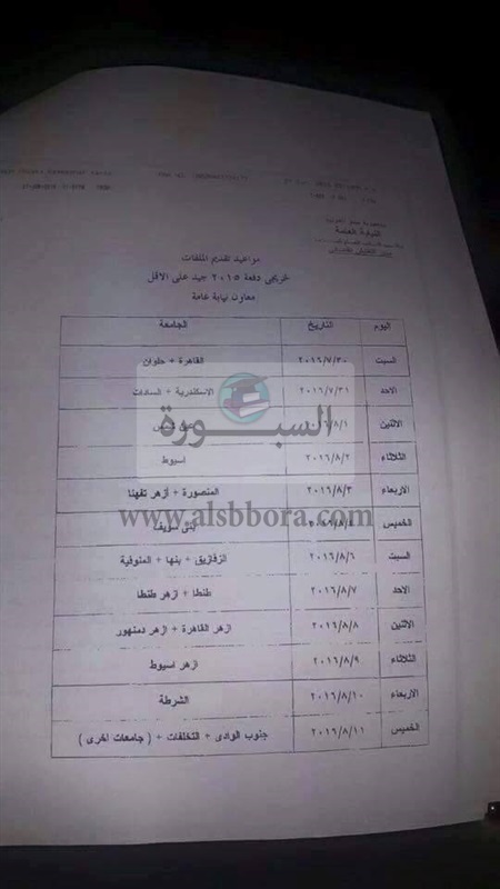 يتم صرف الملفات اعتباراً من 9/7/2016 حتى 14/7/2016، ويتم تلقى الملفات اعتباراً من 30/7/2016 حتى 11/8/2016