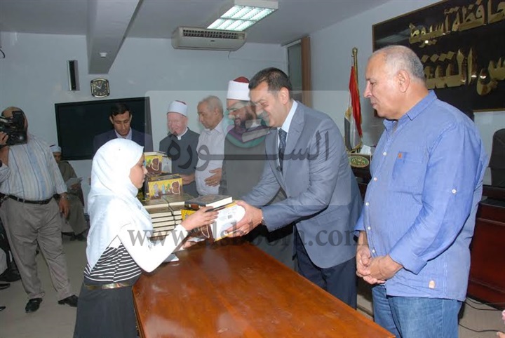 وفى نهاية الاحتفال كرم المحافظ 35 فائزا فى مسابقة حفظ القران الكريم بمختلف مستوياته بمنحهم نسخة من المصحف الشريف والمكافأت المادية والعينية وهم فى المستوى الاول " حفظ القران الكريم كاملا " امنة مصطفى زايد من قرية عرب التتالية بمركز القوصية وريم احمد عبد العال من قرية موشا وفاطمة على عمر مرسى من البدارى والاء احمد محمد حسن من مدينة اسيوط وحمزة منصور عبد الهادى من مركز الفتح وزينب عمر على من البدارى وندى حمادة هيبة من قرية موشا واحمد مصطفى بدرى ومصطفى احمد محمود من مركز الفتح واحمد حسن سلطان من قرية بنى عدى واميرة سعد الدين رفيق من قرية الحواتكة وعلاء نتعى عبد الحكيم من مركز ديروط واسماء بدوى عبد الرحيم من مركز ابوتيج ،وفى المستوى الثانى "ثلاثة ارباع القران الكريم " عمر احمد زغلول عبد الرحيم من مدينة اسيوط وسمية جمال محمد من مركز ابوتيج وطارق زهرى نبيه من مدينة ديروط وكريمة على عبد العظيم من بنى زيد الاكراد وزينب محمد ناجى من مركز ديروط ومحمد حمادة هيبة من قرية موشا وسميحة طارق محمد من قرية بنى زيد الاكراد وعلياء عبد العليم محمد من مركز البدارى وطارق حمادة هيبة من قرية موشا وخلود على زين العابدين من قرية شطب وبالنسبة للمستوى الثالث "نصف القران الكريم " المنذر عماد الدين من مركز صدفا وجهاد هريدى زغبى من مركز ابوتيج ومحمد خالد حسن من مدينة اسيوط وسهير صافى سعيد من مركز ديروط وهناء محمد عبد الحميد من بنى زيد الاكراد وبالنسبة للمستوى الرابع " ربع القران الكريم " مصطفى ناجى خليفة ووليد عبد الفتاح هدية ومحمد نتعى عبد الحكيم من مركز ديروط ومعاذ حسن على والزهراء عادل عمار من مركز صدفا .