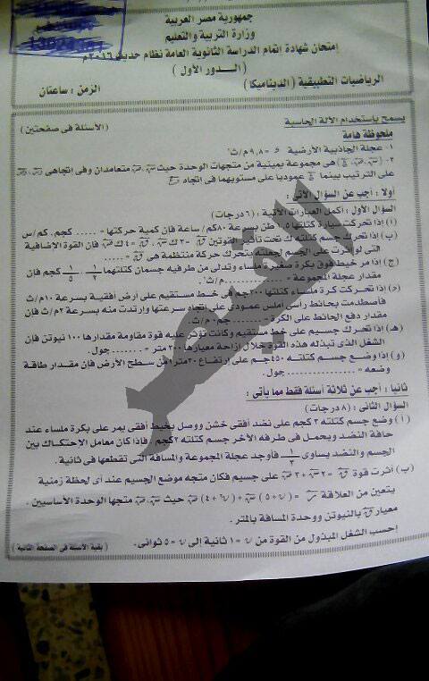 قامت صفحة "القيصر بيغشش ثانوية عامة" بنشر اسئلة امتحان الديناميكا بعد 10 دقائق من دخول طلاب الثانوية العامة الامتحان.