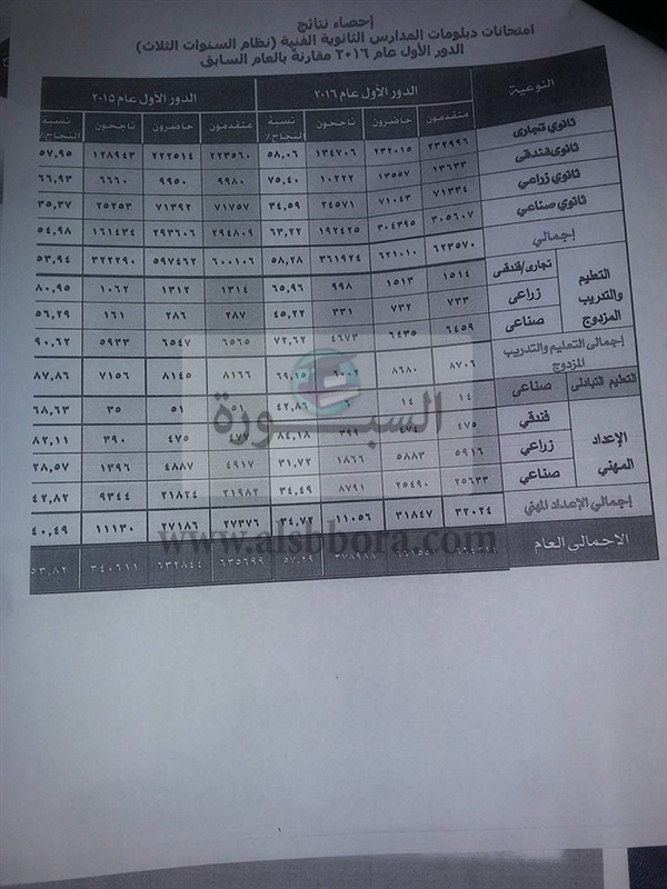 ننشر احصائيات نتائج دبلومات المدارس الفنية نظام الـ "3 و5 سنوات"