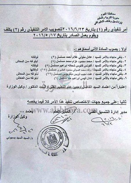بالمستندات| التعليم يصدر أمرا تنفيذيا بترقية أموات ومحالين للمعاش