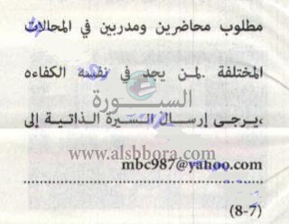 تعلن احدى الاكاديميات بدولة الامارات العربية المتحدة عن حاجتها الى اكاديميين ومدربين فى مجالات مختلفة وعلى الراغبين فى التقدم ارسال السيرة الذاتية على الايميل المنشور عبر الاعلان التالى: