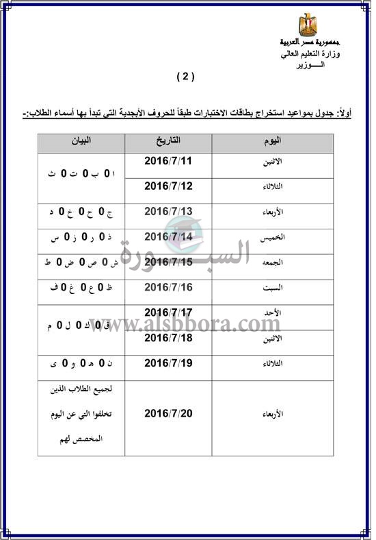 2) عدد (1) صورة شخصية لكل اختبار من الاختبارات، عدا اختبارات قدرات التربية الرياضية والتي تتطلب عدد (2) صورة شخصية بالنسبة للراغبين في أداء هذه الاختبارات