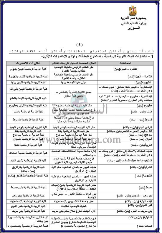 أعلنت وزارة التعليم العالى والبحث العلمى، مواعيد وأماكن استخراج بطاقات القدرات المؤهلة لبعض الكليات التى يشترط القبول بها اجتياز هذه الاختبارات.