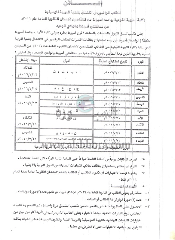جامعة أسيوط تبدأ استخراج بطاقات اختبارات القدرات لكليات التربية النوعية والفنون الجميلة والتربية الرياضية