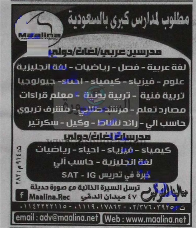 تعلن عدد من كبري المدارس بالسعودية عن جديدة للمعلمين في جميع المواد وذلك وفقا لنص الاعلان التالي: