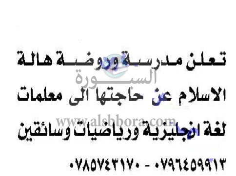 تعلن مدرسة هالة الاسلام الأردنية عن وظائف جديدة للمعلمين وذلك وفقا لنص الإعلان التالي: