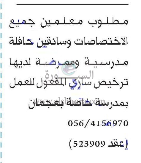 تعلن مدرسة خاصة في إمارة عجمان في دولة الامارات عن وظائف جديدة للمعلمين في جميع المواد وذلك وفقا لنص الإعلان التالي: